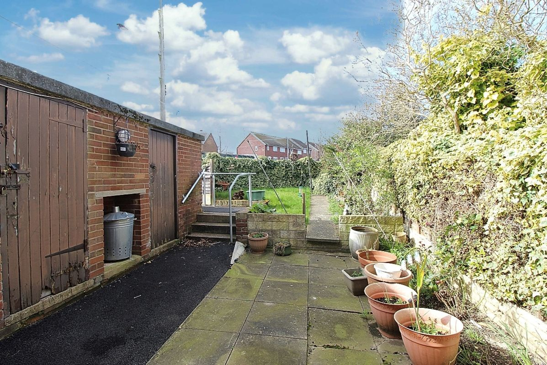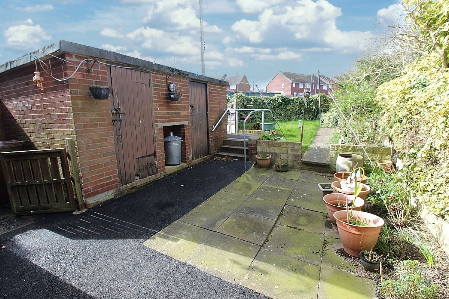 To the front of the property ample road side parking and an attractive low maintenance enclosed decorative stone garden. Gated access to the rear where a paved patio leads to a lawned area with manicured borders and two detached brick-built out houses providing useful storage.