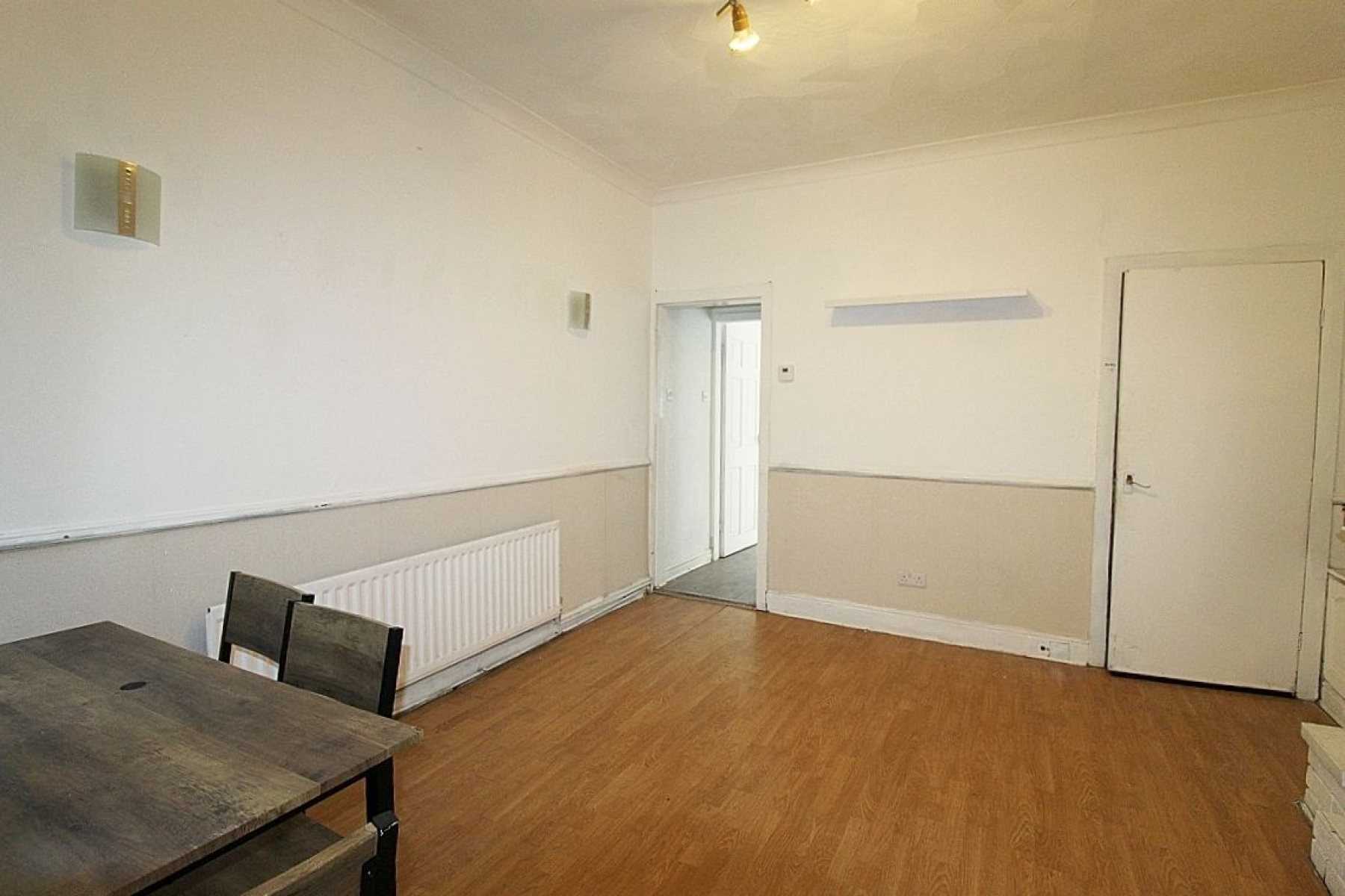 Lounge w: 3.9m x l: 3.5m (w: 12' 10" x l: 11' 6") Entering through a front upvc door with overhead sky light to a spacious lounge, a upvc window creates an abundance of light and a radiator adds warmth. Laminate flooring and a door to the inner hall where carpeted stairs lead to the first floor and an opening to the dining area.