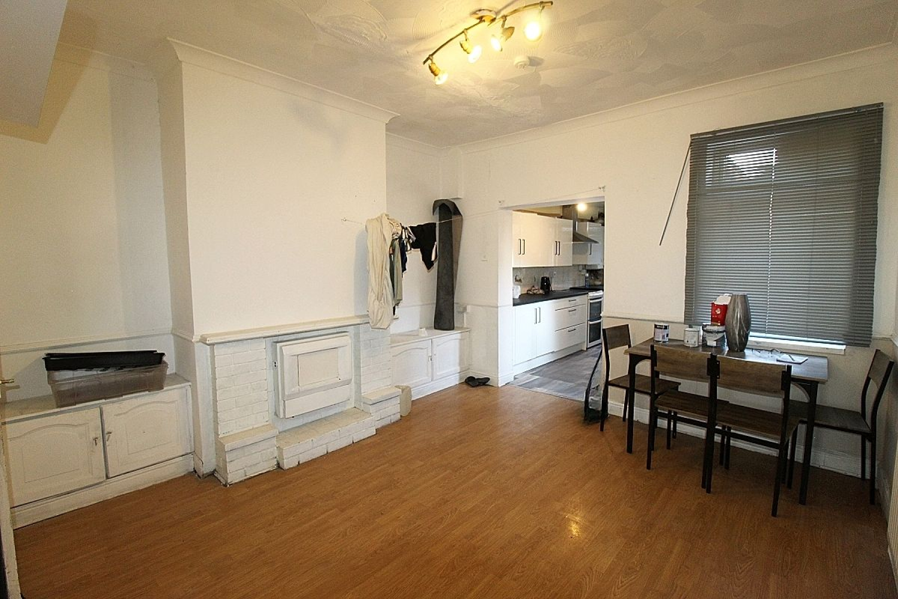 Dining room w: 3.9m x l: 3.9m (w: 12' 10" x l: 12' 10") A spacious second reception room with feature fire place, laminate flooring, rear facing upvc window, radiator an opening to the extended kitchen and a door to the cellar.