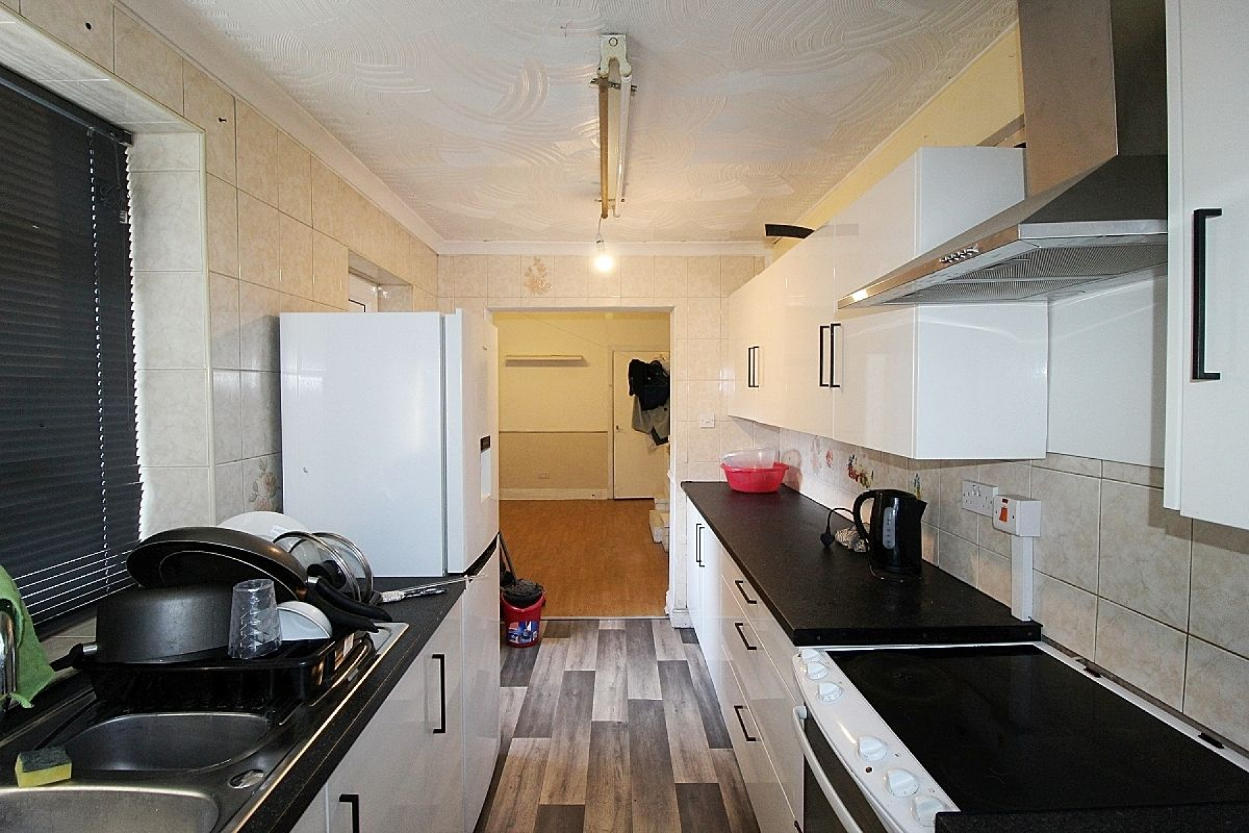 Kitchen w: 2.1m x l: 3.9m (w: 6' 11" x l: 12' 10") Featuring a range of wall and base units with complimentary work surface areas with tiled back panels, inset oven and plumbing for further utilities. Vinyl flooring, radiator, side and rear facing upvc windows and a glazed upvc door to the garden.