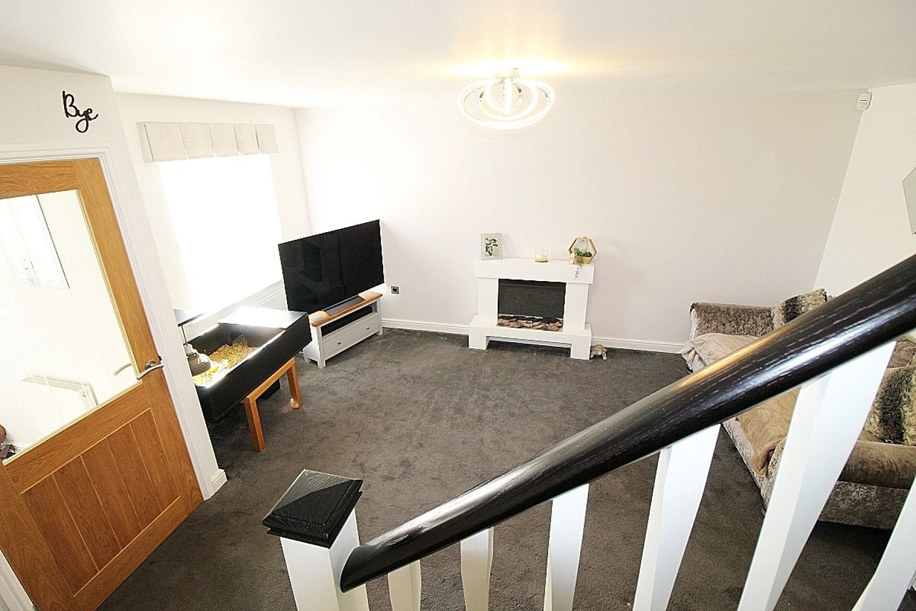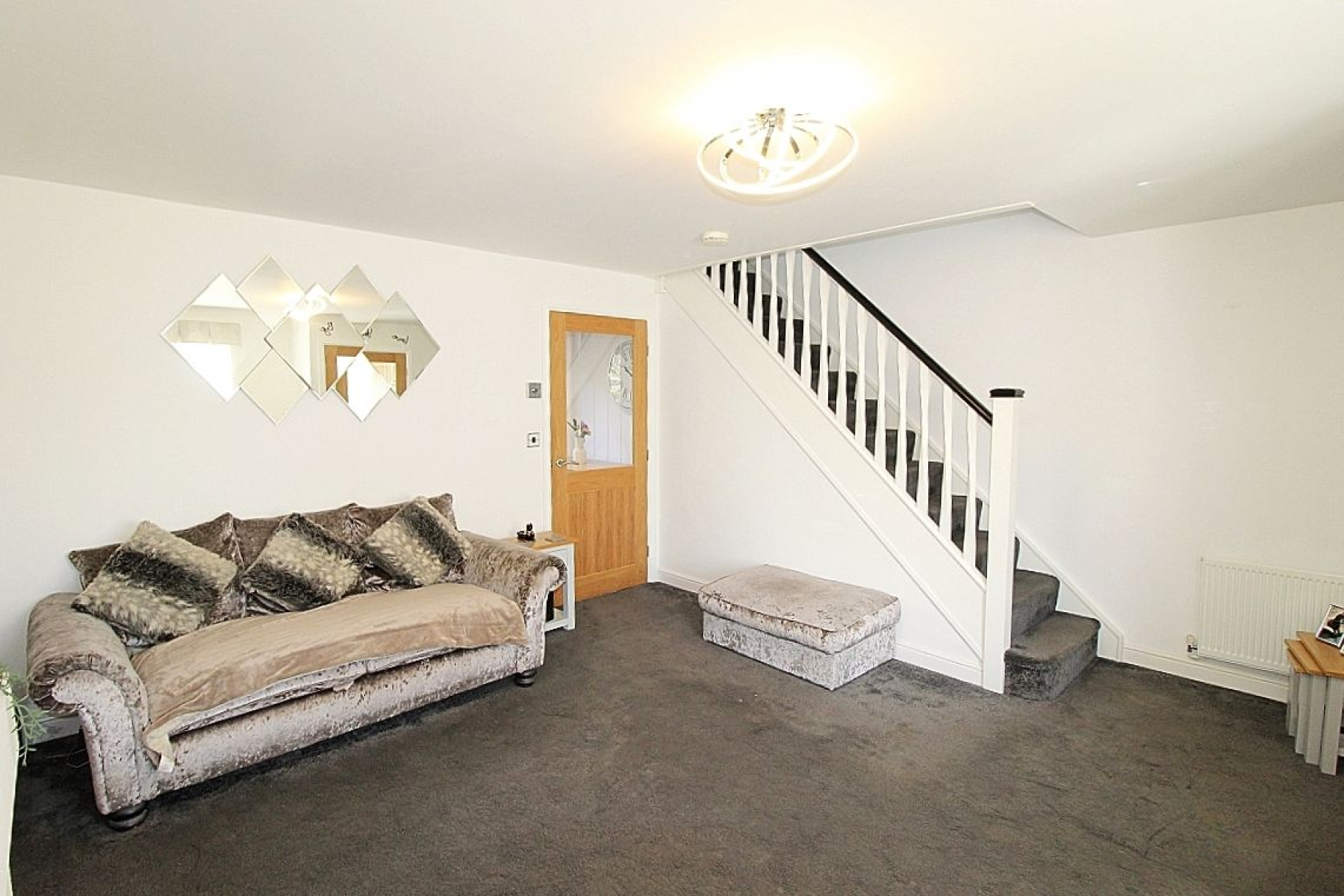 A beautifully appointed spacious Lounge with carpeted flooring leading to spindled stairs to the first floor, two radiators add warmth and a front facing upvc window allows an abundance of light. A beautiful fire place creates a feature and a solid wood door to the breakfast kitchen.